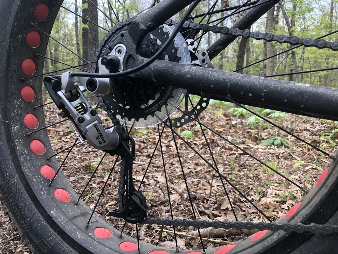 The GBEM comes with Vee Tire Co. Mission Command tires. Durable wire beads and bit heavy but a good overall tire to start with. I rode mine for a few months before I changed to a pair of Maxxis Mammoths. They’re a folding bead which means they’re a bit lighter, more supple with a solid center tread that rolls very well on pavement or trail. Given that I now have the Poseidon X to cover longer road/gravel oriented rides my next set of tires, Maxxis Minions, are more aggressive as I won’t have to worry about the smooth center tread for the little pavement I do on this bike. I’ve found in recent days that a layer of partially frozen sub-soil with a top layer of melted mud really creates an ice-like surface that the Mammoths slip on. I’ll likely post a comparison of these two tires in the near future. I mentioned above that they seem fairly thorn resistant and they should be, they’re expensive. Decent fat bike tires cost $90 for ONE tire. So, $180 (or more) for a pair. Yikes.