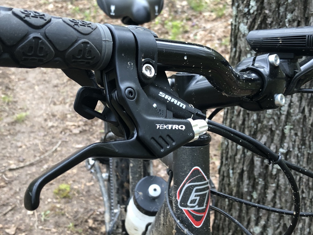 Moving onto the drivetrain, when I was replacing the cog set and chain I noticed that my rear derailleur hanger was very slightly bent (likely out of the box). I should have looked closer on initial set-up. When I bent it back I was able to change the limit screws a bit. Previously one was maxed out due to the bent hanger. I’d tweaked it when I set it up and didn’t realize the problem was actually the bent hanger. Anyway, the SRAM shifters and X4 rear derailleur have been fine. The Shimano Alivio front derailleur is good too. These are low-mid level components, so, not the best, but not bad. Perhaps heavier and slower to shift but nothing that has bothered me. The SRAM x4 trigger shifters work as expected.